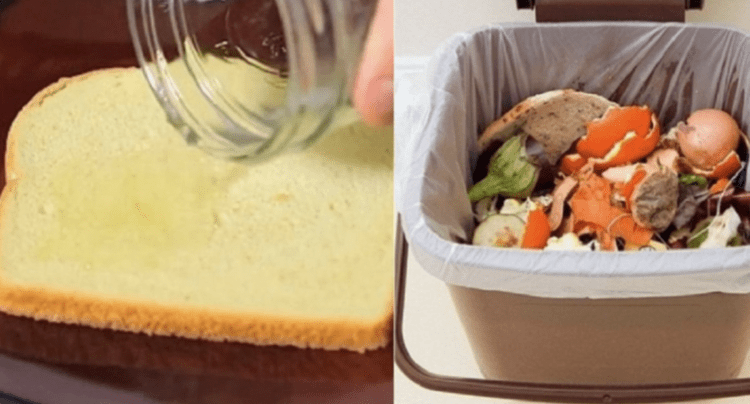 Trash cans often become smelly, even when trash bags are used. To permanently remove these odors, you can use bread and vinegar. Just take a slice of bread and soak both sides in vinegar. Put it at the bottom of the trash can and leave it there overnight. When you change the trash bags the next day, there will be no unpleasant smell. To prevent the bread from dirtying the can, place a sheet of baking paper underneath it. This easy solution will permanently address the issue.
